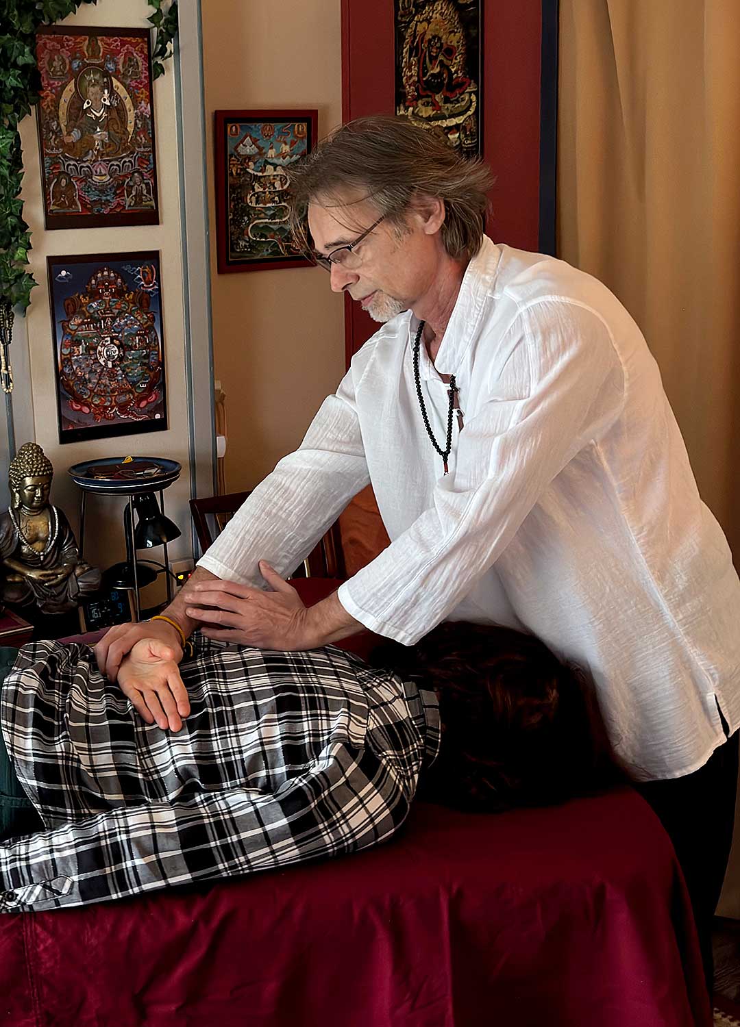 Több mint húsz éve foglalkozom a belső úttal és a tudatosság gyakorlati megvalósításával. A keleti tanítások és a modern önismereti módszerek találkozása formálta azt az utat, amely ma a kezelések alapját adja. Tanulmányaimat a Tan Kapuja Buddhista Főiskolán végeztem, ahol a meditáció, a tudatosság és a filozófiai látásmód szilárd alapjait kaptam. Az elmúlt években a Bhávaná Egyesület vezetőjeként olyan folyamatokat támogattam, amelyek segítik az embereket visszatalálni a test, a beszéd és a tudatosság egyensúlyához. Hiszem, hogy a valódi fejlődés az integrációban rejlik: abban, hogy a keleti bölcsességet és a modern élet tapasztalatait egyesítve tanulunk tudatosan, szabadon és alkotó módon élni.