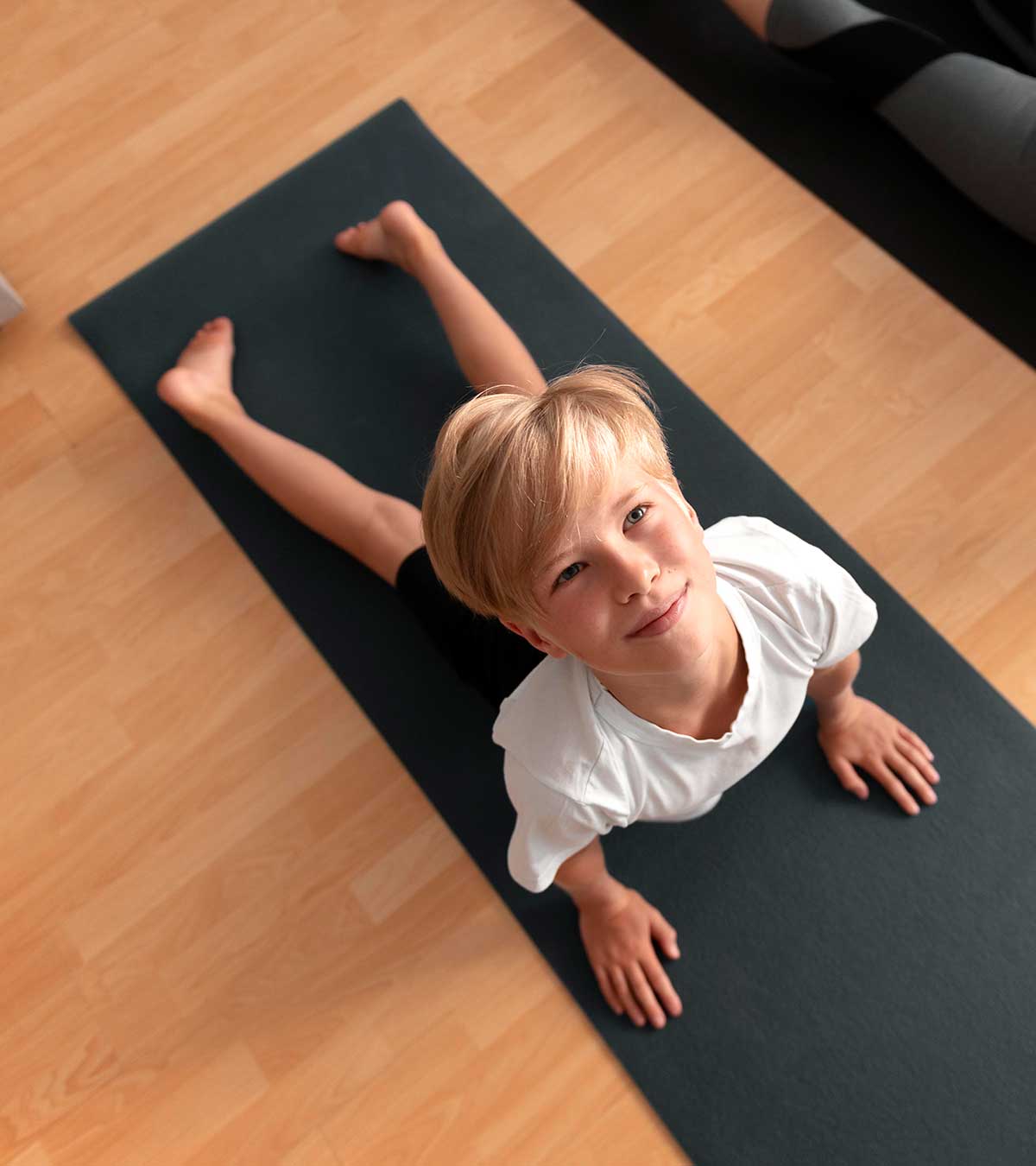 Az óra elején lassú, egyszerű mozgásokkal és légzéssel kezdünk. Ez segít a gyerekeknek kilépni az iskolai vagy otthoni pörgésből, és megérkezni a saját testükbe.